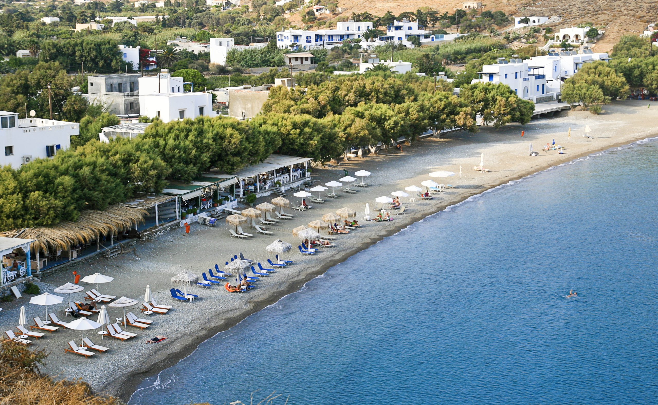 - Scenic Backdrop: The beach is nestled in a small valley filled with citrus and fruit trees, with the whitewashed houses of Livadi village adding to its charm.
